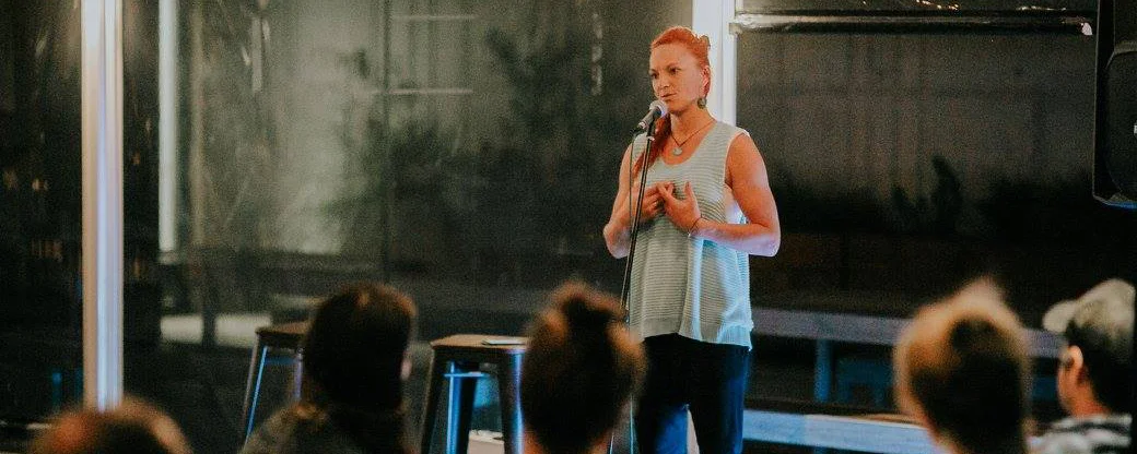 A Public Speaking Event includes personal insights on a journey to reprogram the 'Status Quo', humour, spoken word poetry performance, and some powerful tools to access this freedom available to us all through Mindfulness and simple tools for present moment living.
